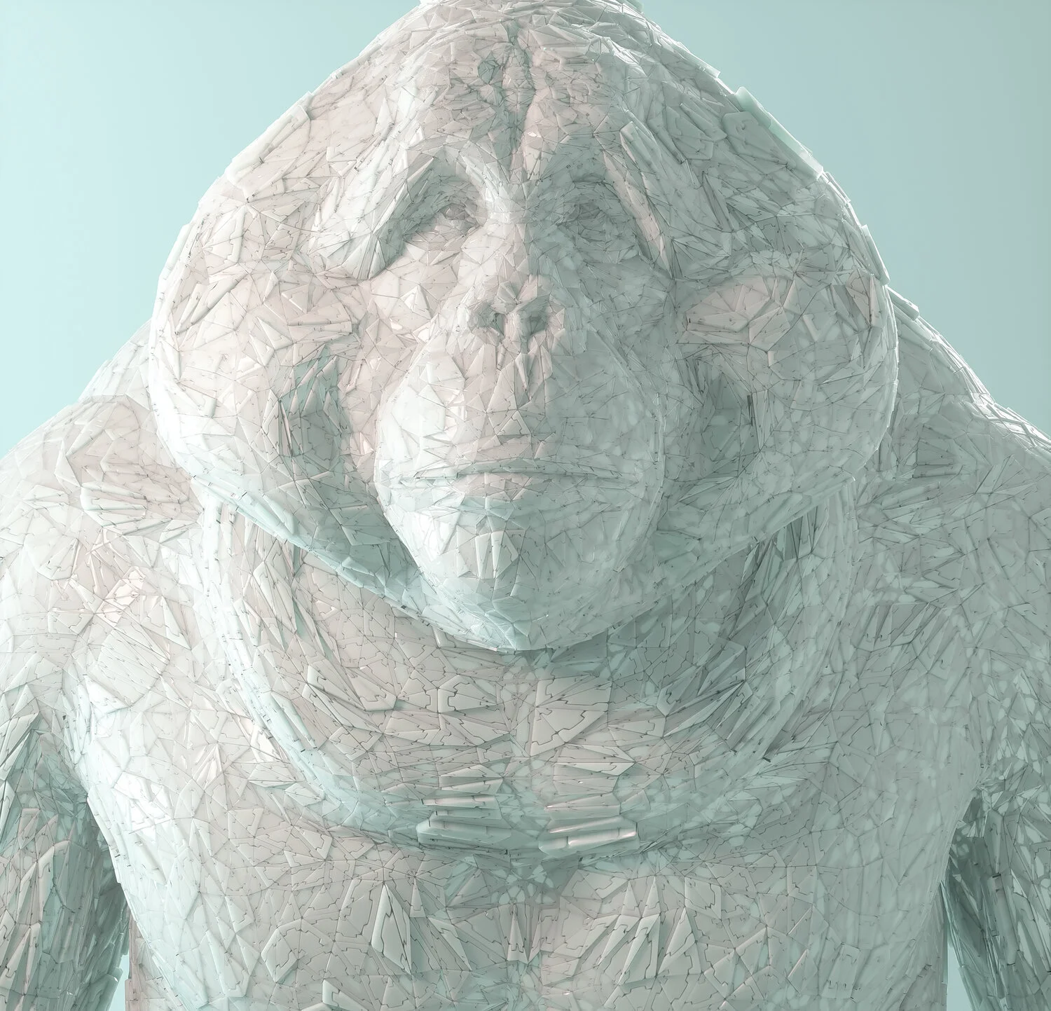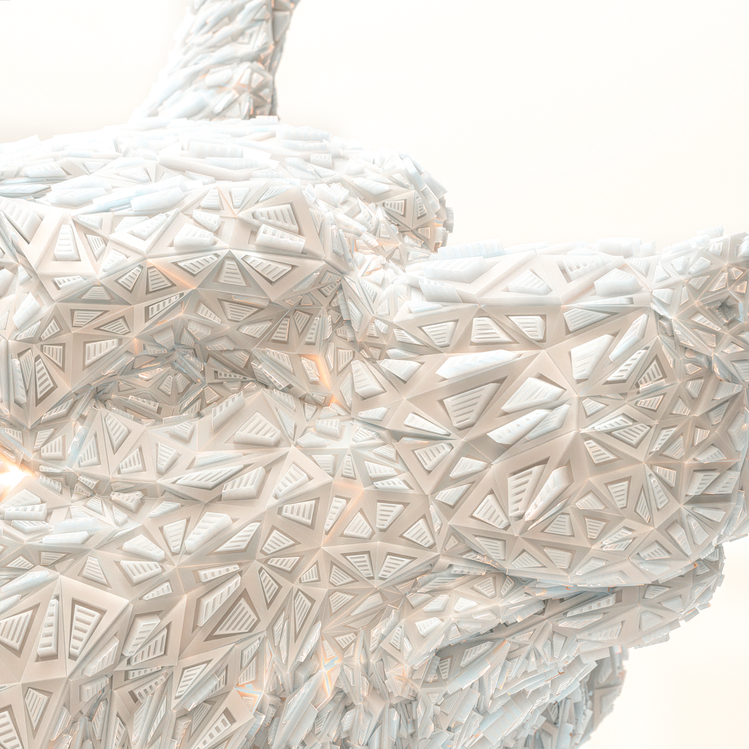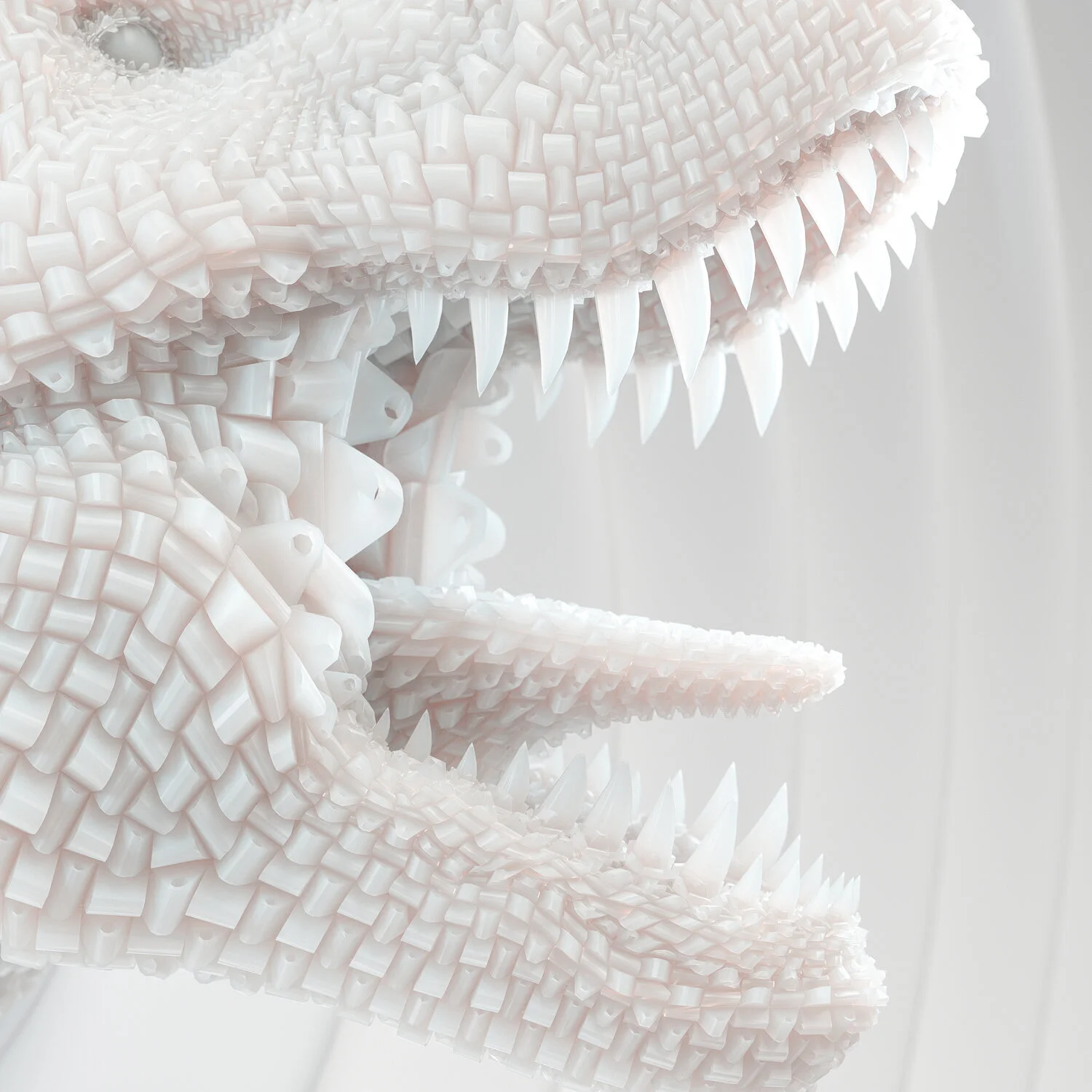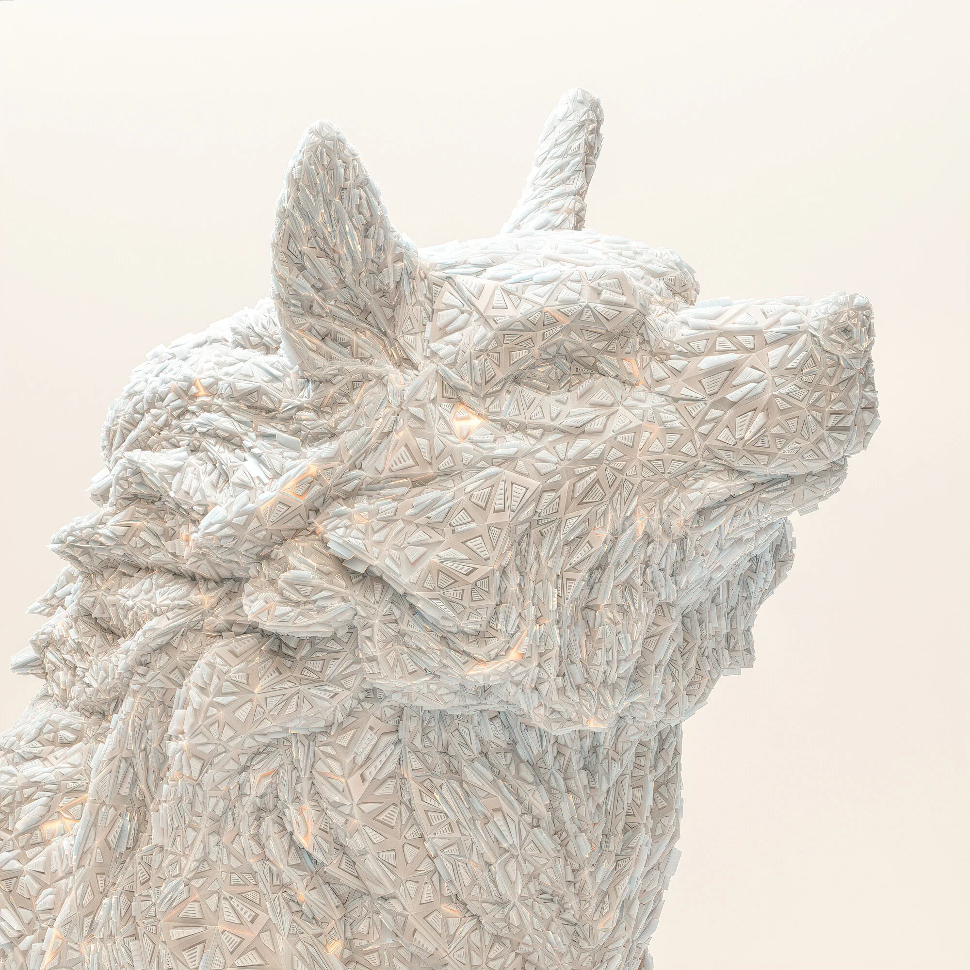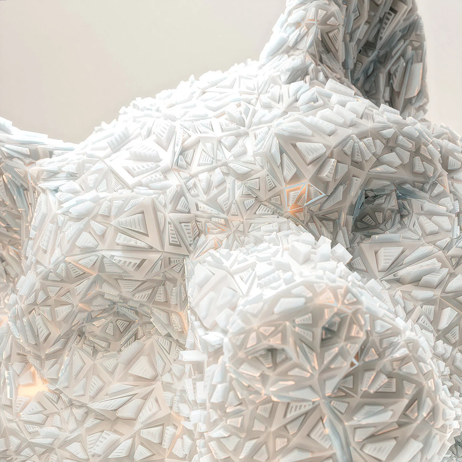 This series I wanted to explore how naturalistic subjects like wild animals could be rendered in a highly abstract and mesh-like aesthetic. After going through a fairly laborous decimation process, it was ZBrush’s nanomesh function that brought the real detail to 3d sculptures of the animals with light and final render in Cinema4D and Octane.